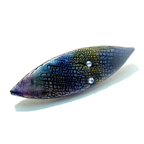Description: Crescendo. Hand painted over black clay, set with two Swarovski crystals.